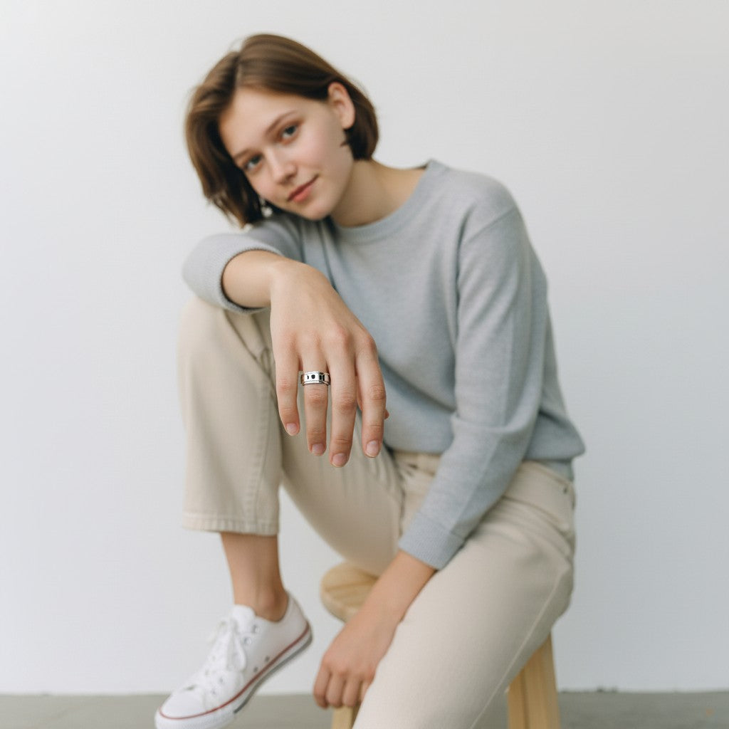 The rotatable outer band gives your hands a calming outlet, helping you ease anxiety, reduce fidgeting, and stay grounded throughout the day. Simply spin the ring when stress hits — it’s quiet, smooth, and instantly soothing.